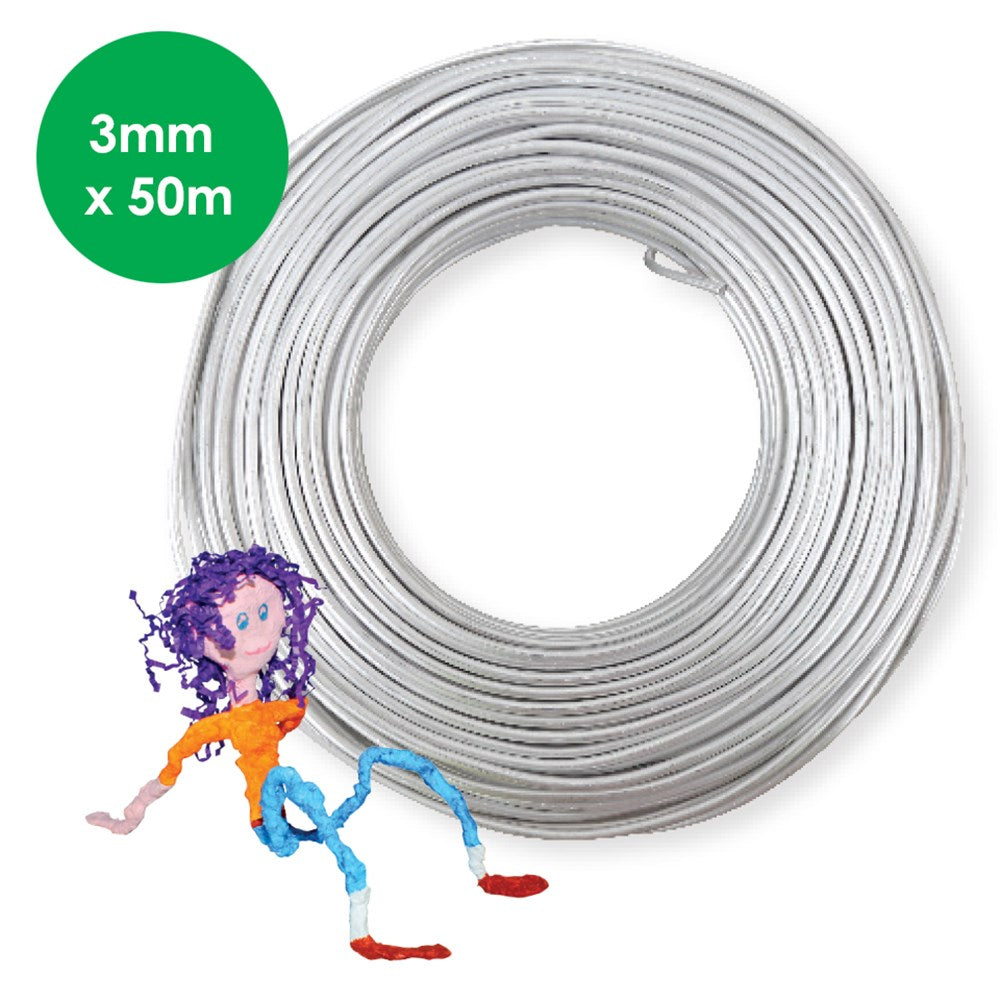 Aluminium modelling wire that can be easily cut with scissors or pliers. Armature wire measures 3mm x 50m.
