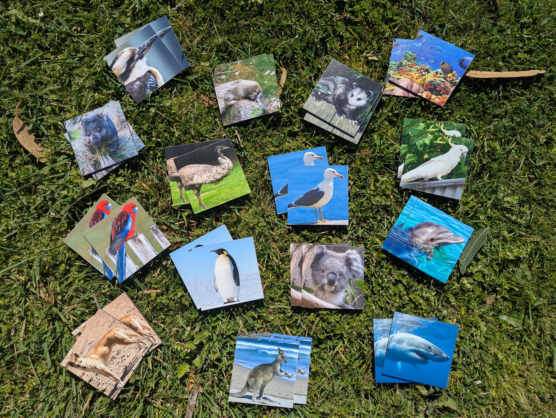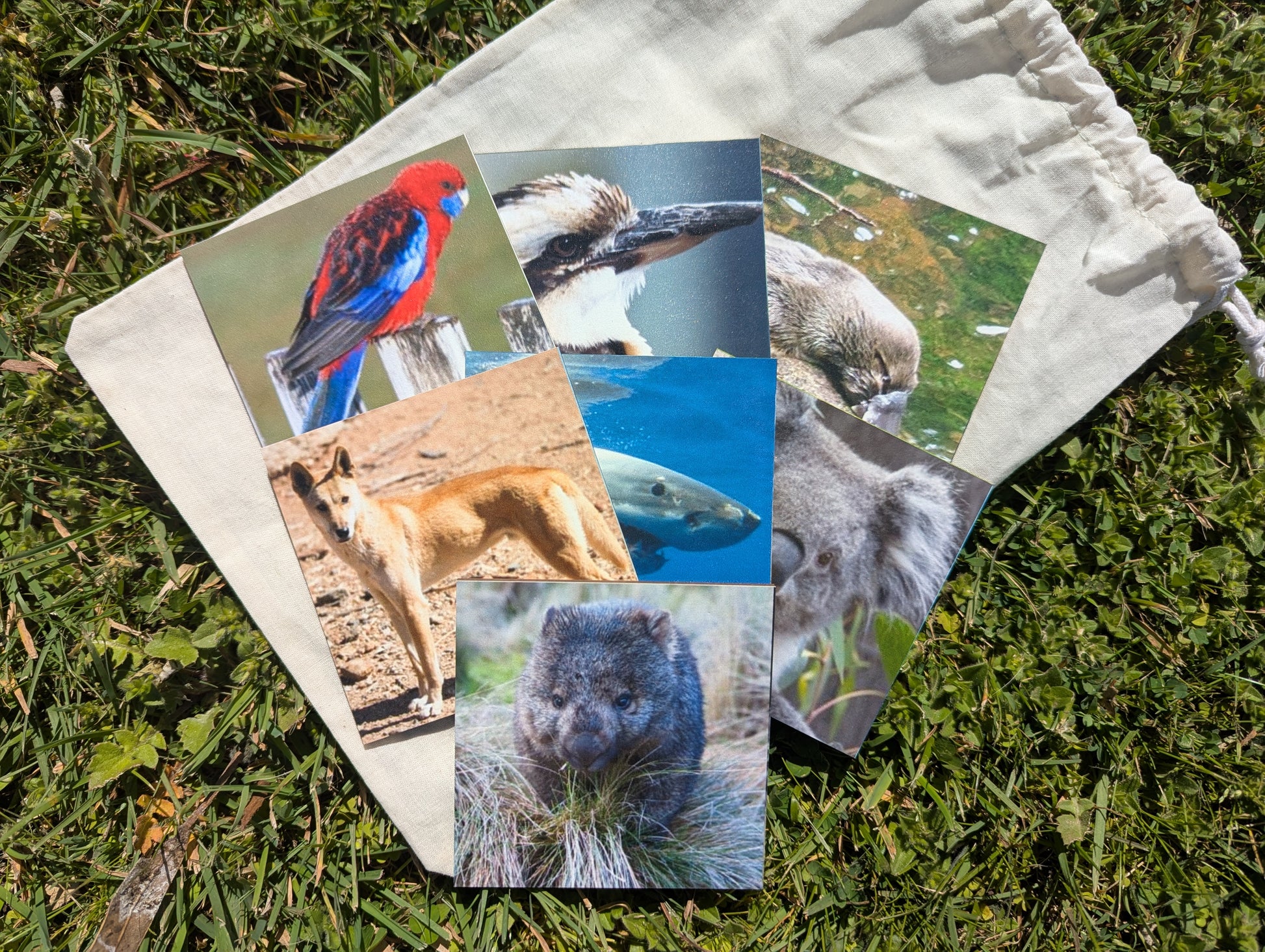 This set includes x 30 pieces or x 15 matching sets of Australian animals - These are Pictures on wood to be used a memory game or can be used as a A3 collage - Each measures approx 9cm x 9cm - Made by Wisdom Activities.