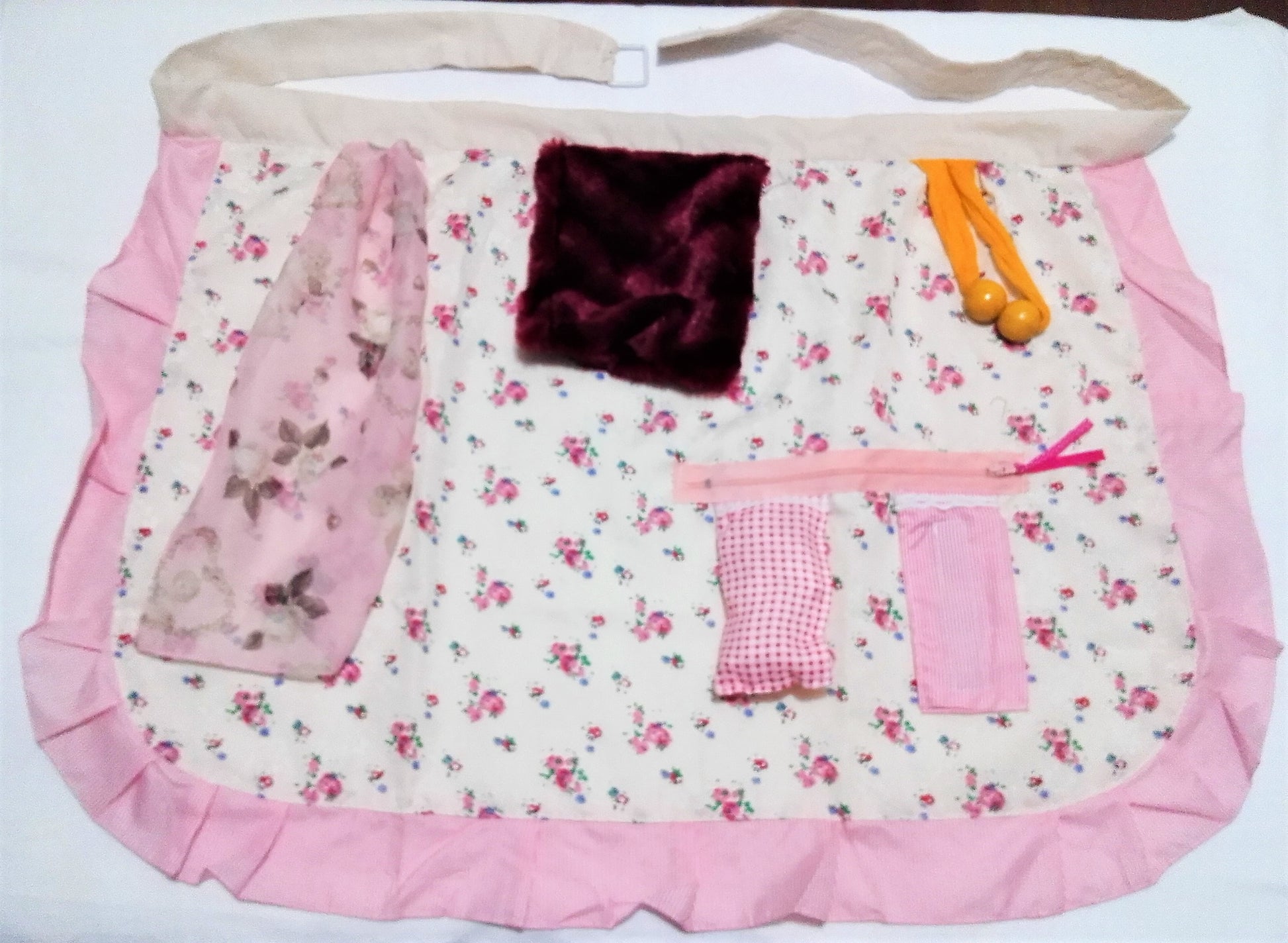 Simple half ladies apron - Comes with Furry Tactile piece, Sound pouch, zipper, loose scarf and tie up belt.