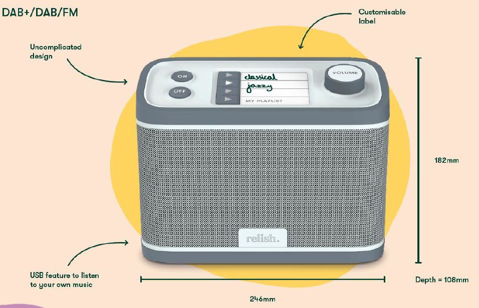 Brings music into the lives of people with dementia to be enjoyed at the touch of a button and adding their own choice of music by inserting a USB.